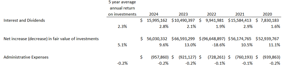 The performance of the Plan’s investments over the past five years (average 7.2%) is shown in the following table: