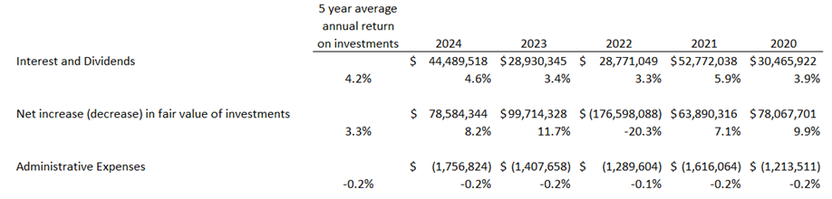The performance of the Plan’s investments over the past five years (average 7.3%) is shown in the following table: